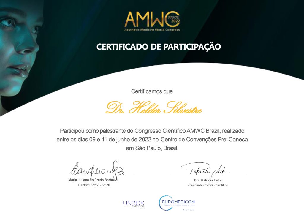 De 9 a 11 de junho, marcou presença, como palestrante, no Congresso Científico AMWC 2022 – Aesthetic Medicine World Congress.