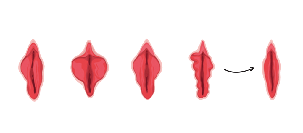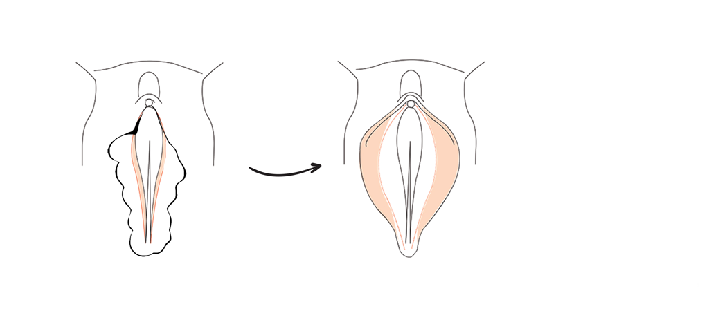 Muitas mulheres apresentam um aumento inestético dos pequenos lábios, saindo para fora dos grandes lábios. Esteticamente, os pequenos lábios devem estar contidos pelos grandes lábios.